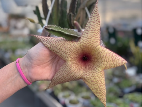 Have you seen Patrick? Our Giant Starfish Flower (Stapelia gigantea) has finally opened and he is HUGE!